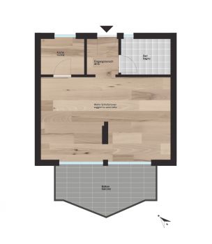 Die Wohnung befindet sich im Dachgeschoss und bietet einen einladenden Eingangsbereich, ein helles Wohn-Schlafzimmer, eine praktische Kochnische sowie ein Badezimmer. Highlight ist der großzügige Balkon mit viel Sonne und schönem Ausblick.
