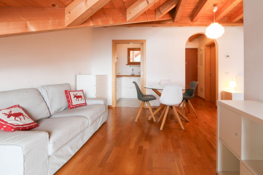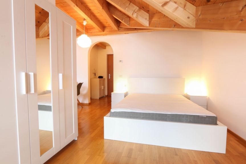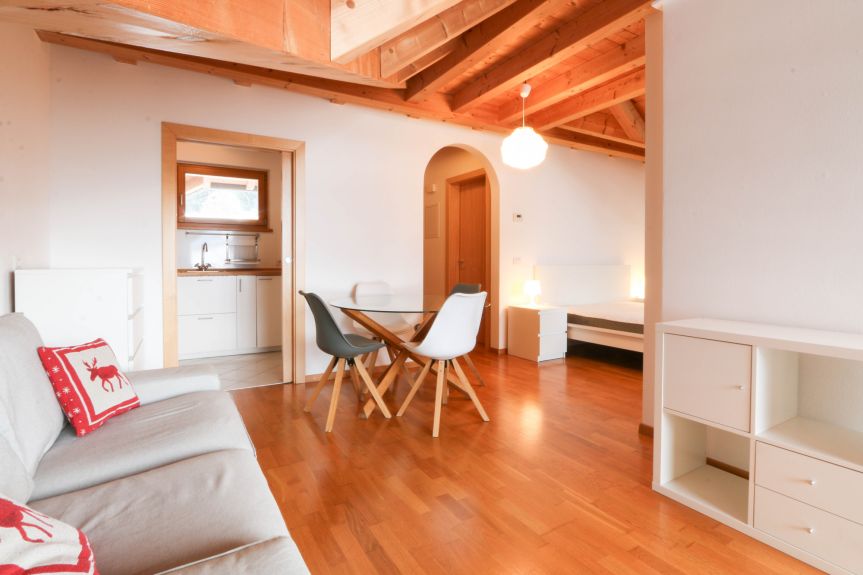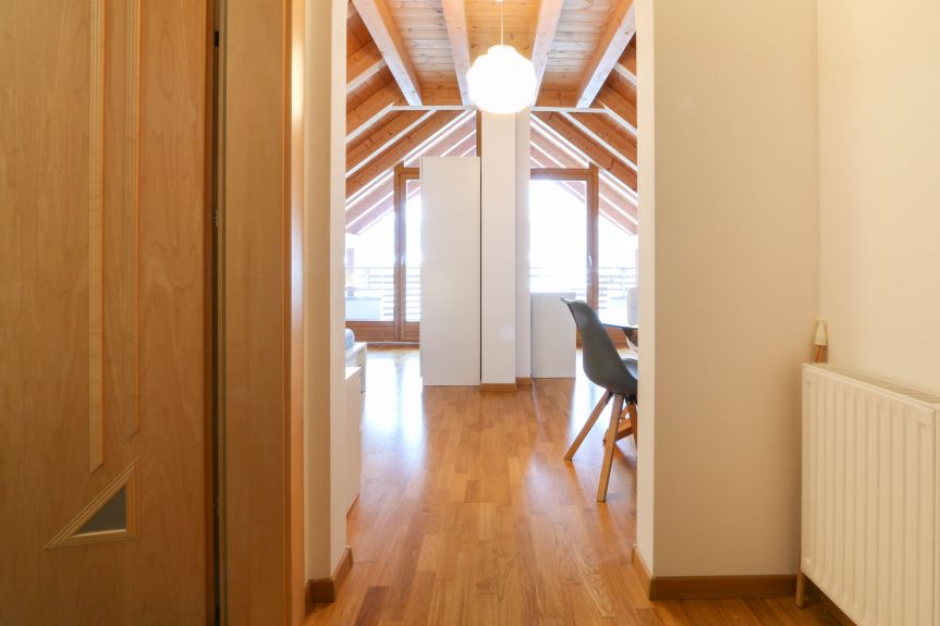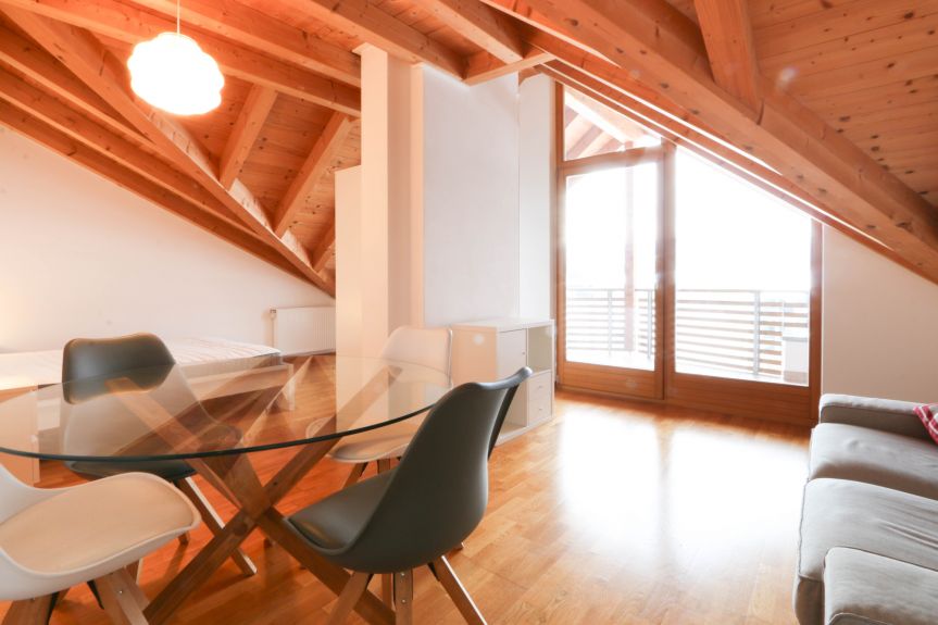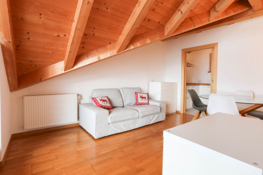 Die Wohnung befindet sich im Dachgeschoss und bietet einen einladenden Eingangsbereich, ein helles Wohn-Schlafzimmer, eine praktische Kochnische sowie ein Badezimmer. Highlight ist der großzügige Balkon mit viel Sonne und schönem Ausblick.