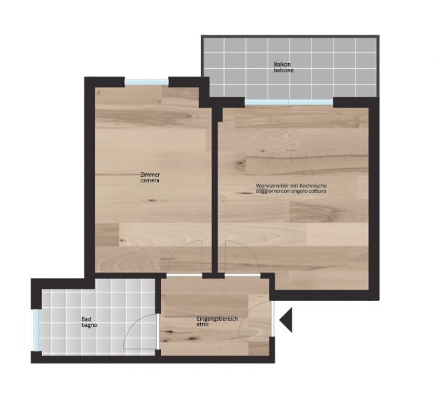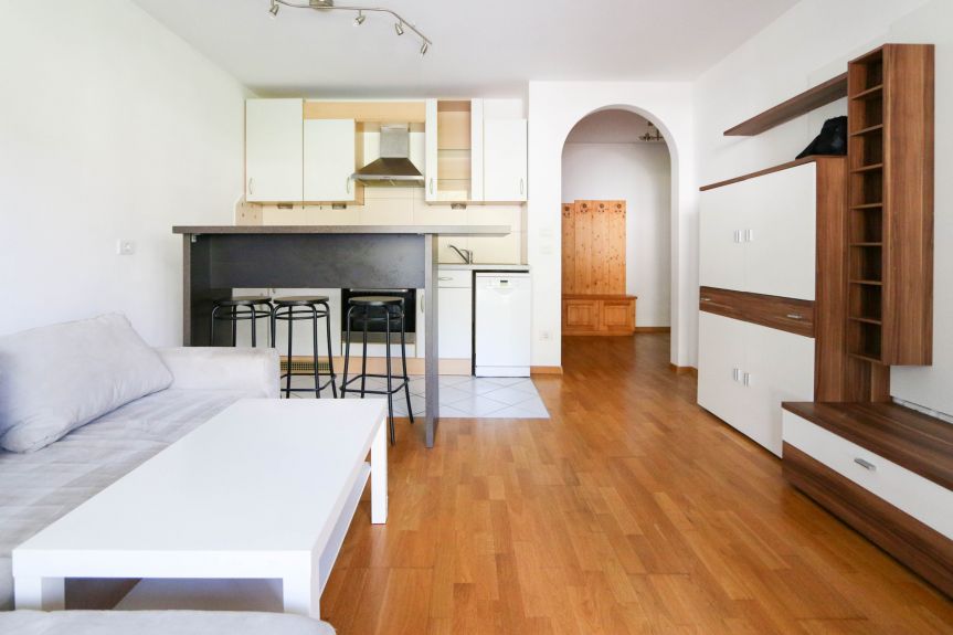 Die attraktive Wohnung verfügt über ein großzügiges Wohn-/Esszimmer mit einer funktionalen Küche, ein geräumiges Schlafzimmer, ein Badezimmer, ein Kellerabteil und einen zugehörigen Garagenstellplatz.