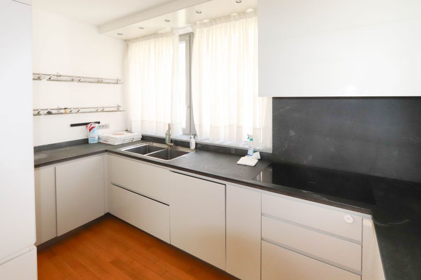 Auf dem Dach gibt es eine Terrasse mit einzigartiger Aussicht und genügend Platz für einen großen Esstisch und Liegestühle. Darüber hinaus ist die Wohnung mit einem Keller im Untergeschoss ausgestattet