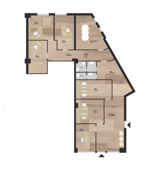 L’arredamento (pareti in vetro nella parte anteriore, cucina, pannelli acustici, moquette nella parte posteriore, tutte le lampade e i mobili) può essere rilevato dall’attuale inquilino al prezzo di € 30.000.